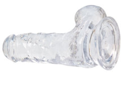 Dit is de kleine dildo met zuignap uit de Crystal Addiction-serie. Deze piemel zie je bijna niet staan. Ach gosh. Maar dat komt niet doordat hij zo klein is, want zo vreselijk klein is-ie...