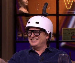 Welke dildo staat op de witte brommerhelm van Rene van der Gijp?